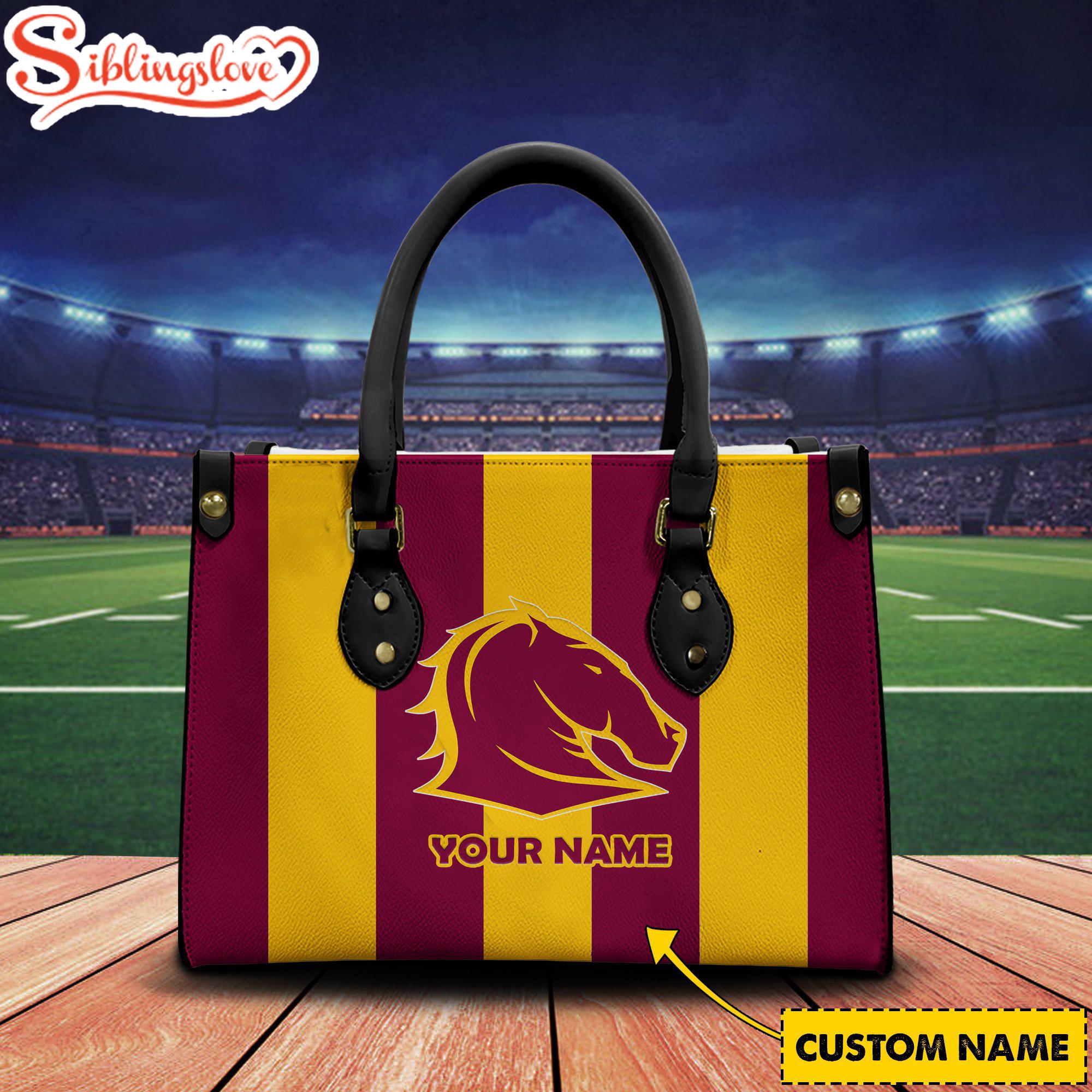 Photos Of Custom Name Brisbane Broncos NRL Leather Hand Bags For Fan