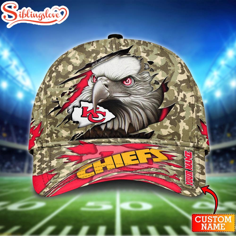 Custom Name Kansas City Chiefs NFL Eagle Camo Baseball Cap For Fans