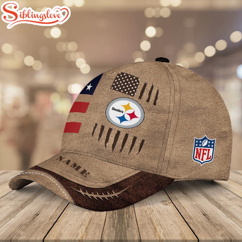 Product details: Custom Name NFL Pittsburgh Steelers American Flag Classic Baseball Cap