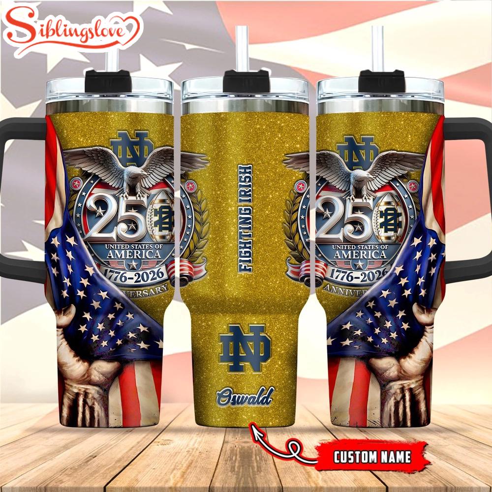 Custom Name Notre Dame Fighting Irish 250 United States Of America 1776-2026 Tumbler 40Oz