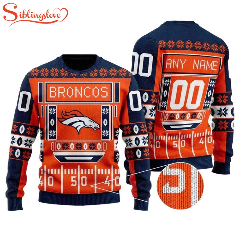 Custom Name Number Nfl Denver Broncos Playing Field Ugly Christmas Sweater