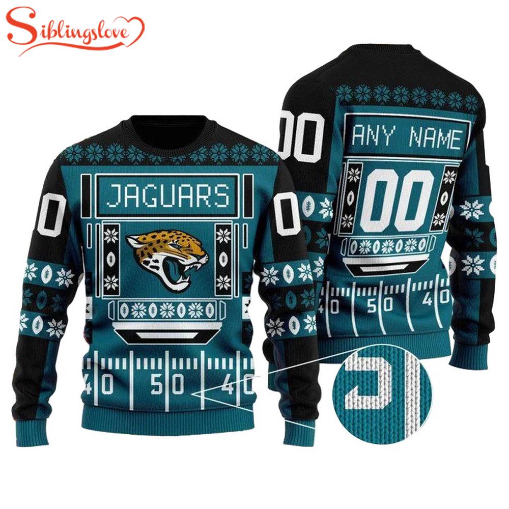 Product details: Custom Name Number Nfl Jacksonville Jaguars Playing Field Ugly Christmas Sweater