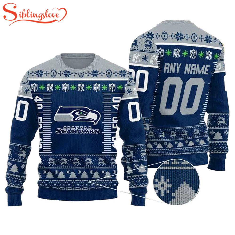 Custom Name Number Nfl Logo Seattle Seahawks Ugly Christmas Sweater