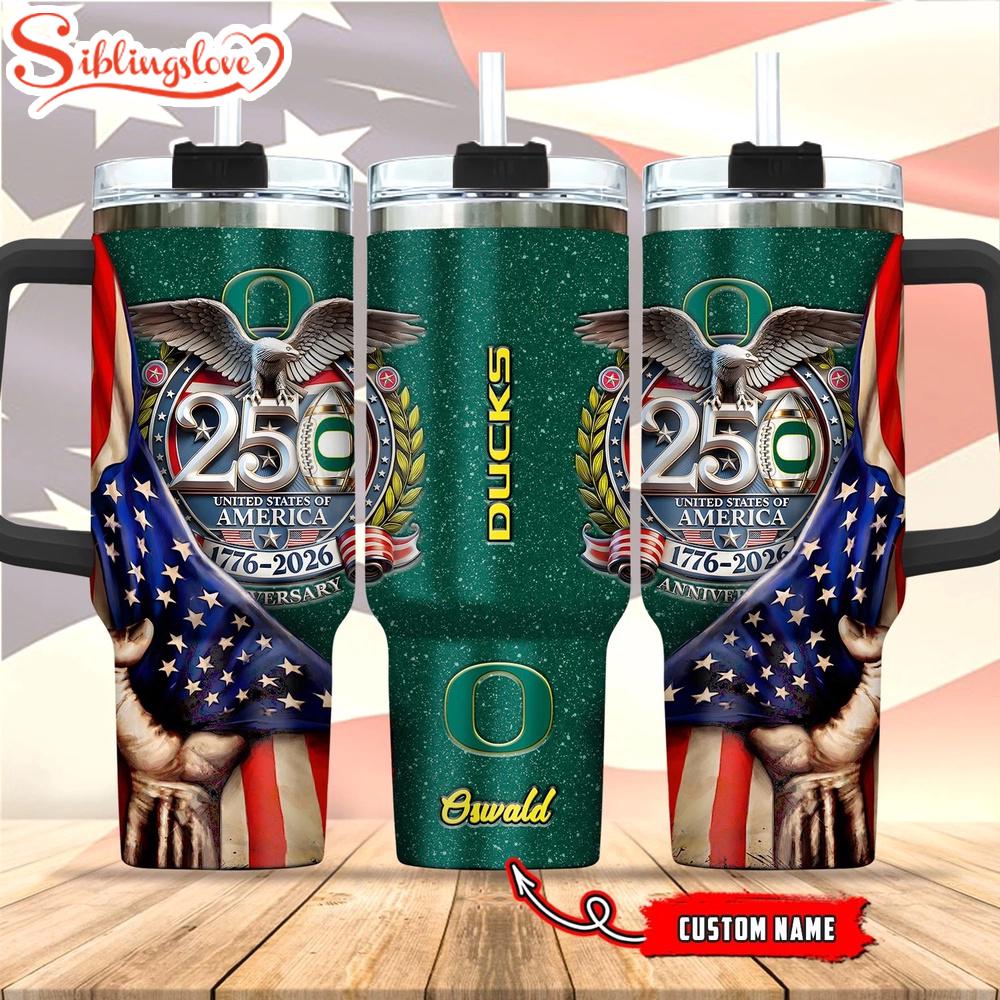 Custom Name Oregon Ducks 250 United States Of America 1776-2026 Tumbler 40Oz