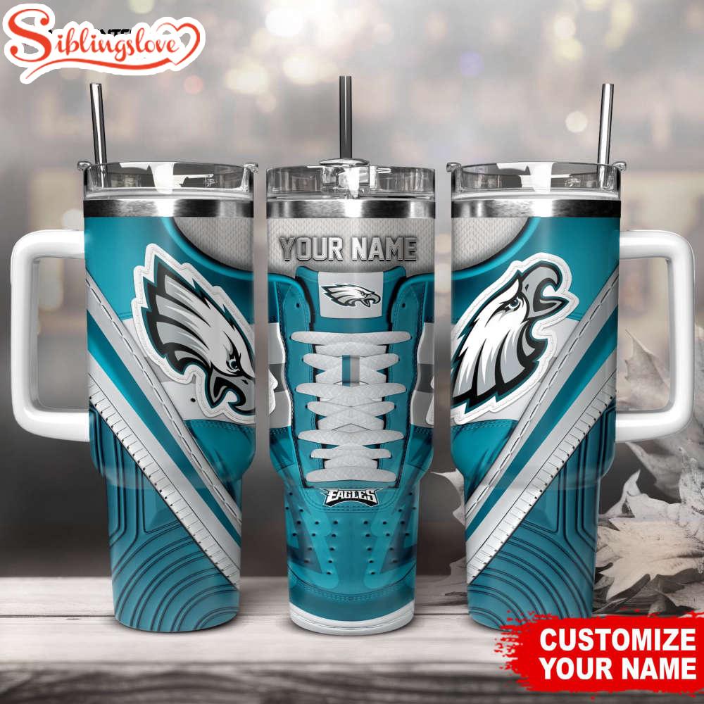 Custom Name Philadelphia Eagles Sneaker NFL Tumbler 40Oz Handle