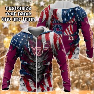 Customized NCAA Virginia Tech Hokies Hoodie 3D Athletic Bliss For Fans is the perfect 3D Hoodie for fans. With its vibrant 3D print, premium material, and high collar, this hoodie offers comfort, warmth, and style. Embrace a sense of pride as you showcase your love for your favorite team.Available in various patterns and colors, it’s the perfect choice to express your passion for football and your personal style.