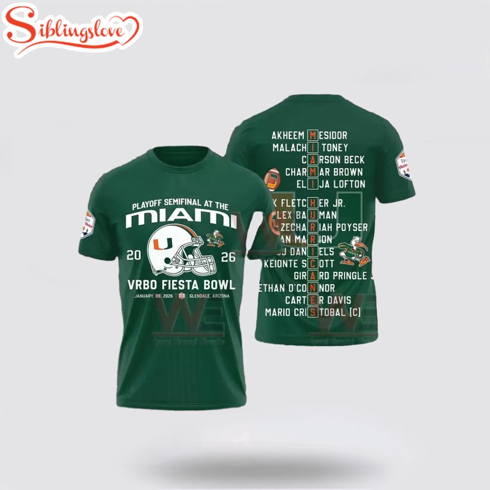 Photos Of Miami Hurricanes Sebastian Football Bowl 2026 3D Shirt For Fans